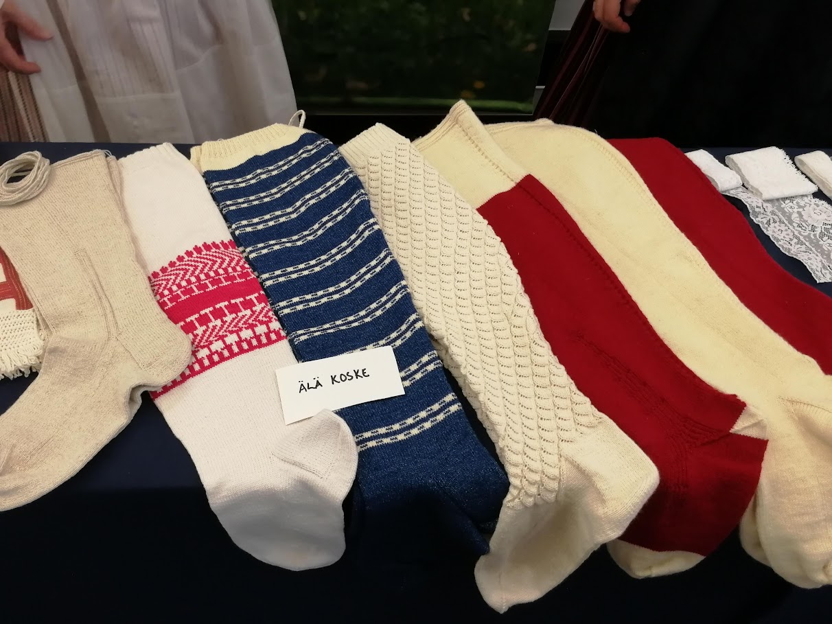 Kirjoneulesukat kansallispuvuissa