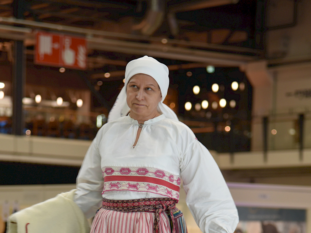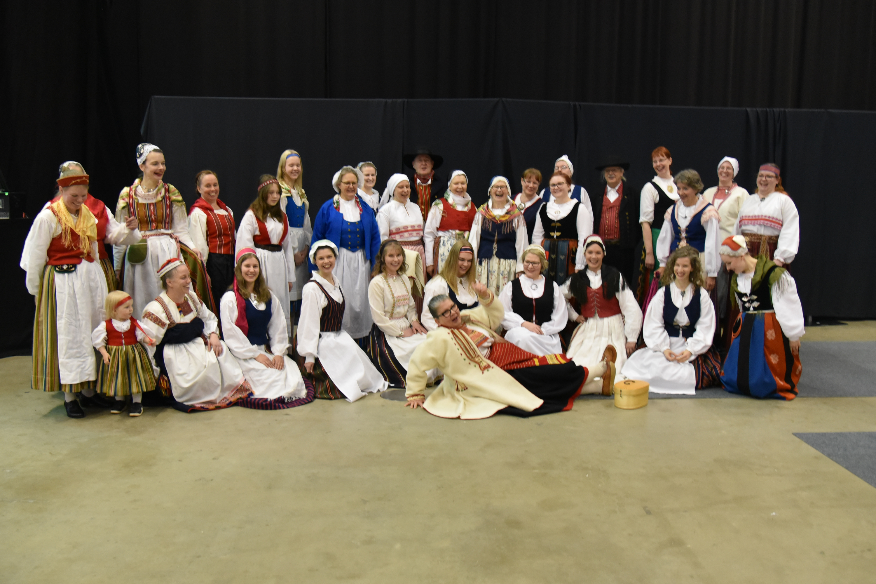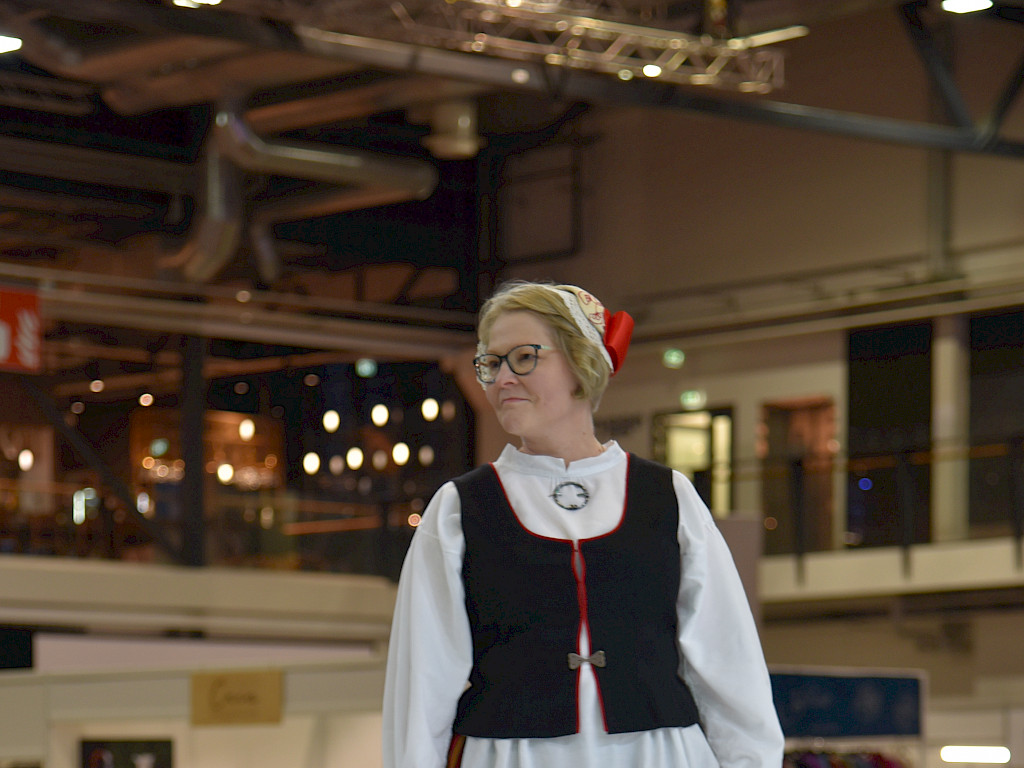 Kuvasatoa Raidan järjestämästä kansallispukunäytöksestä vuoden 2022 Suomen Kädentaidot -messuilta Tampereelta.