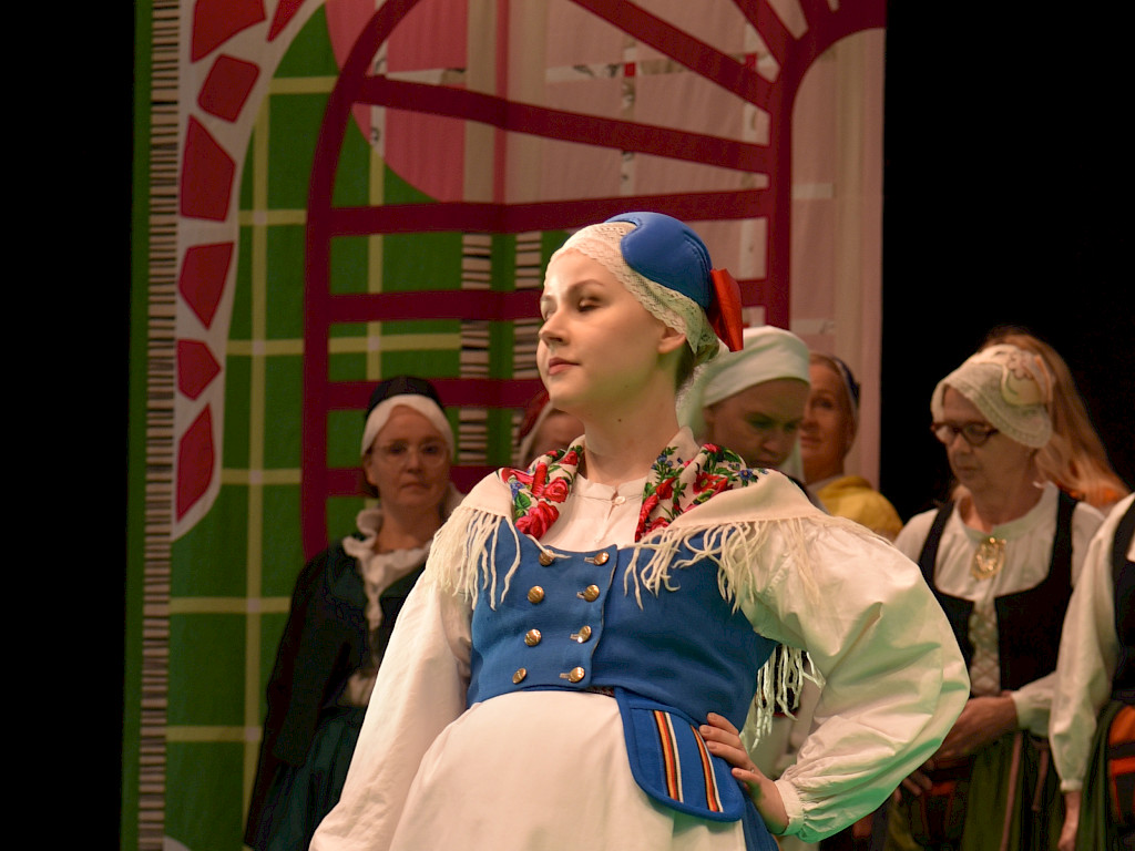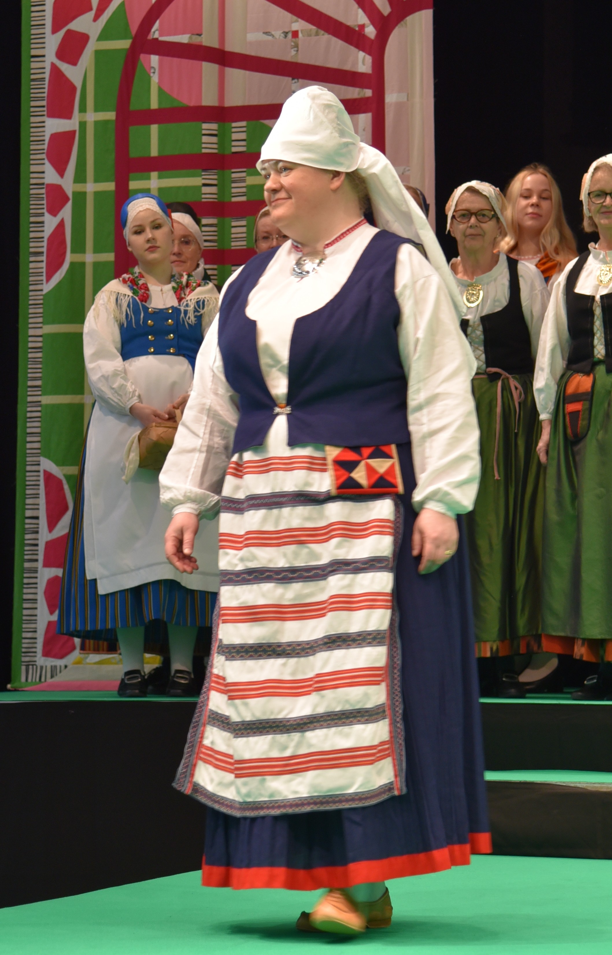 Millainen on suomenruotsalaisen alueen naisen kansallispuku?