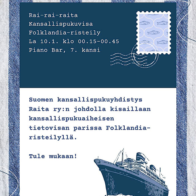 Suomen kansallispukuyhdistys Raita ja Föreningen Brage järjestävät yhdessä viikonlopputapahtuman 28. - 29.3.2026.